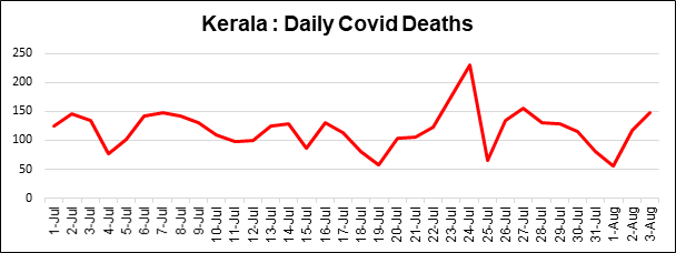 Kerala is also reporting large incidence of daily new Covid infections. Kerala component exerts significant influence on the national figures.